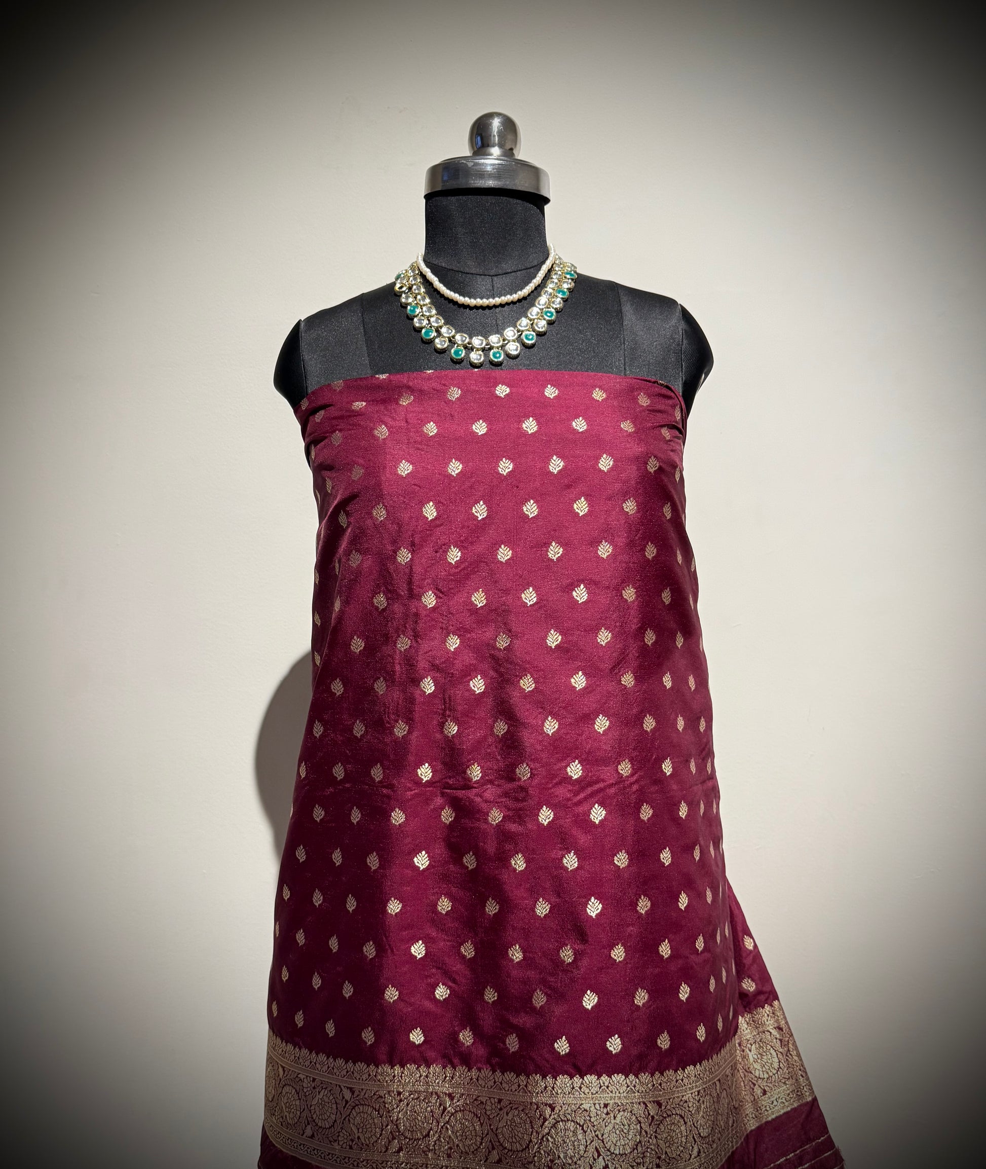 • Colour: Wine Maroon with antique golden zari